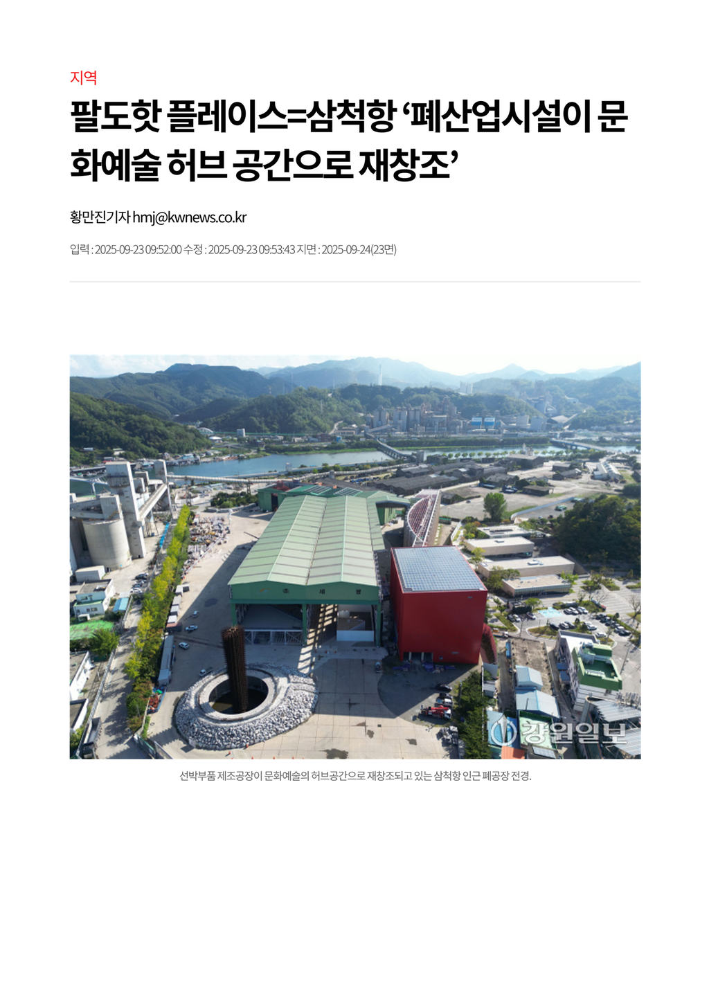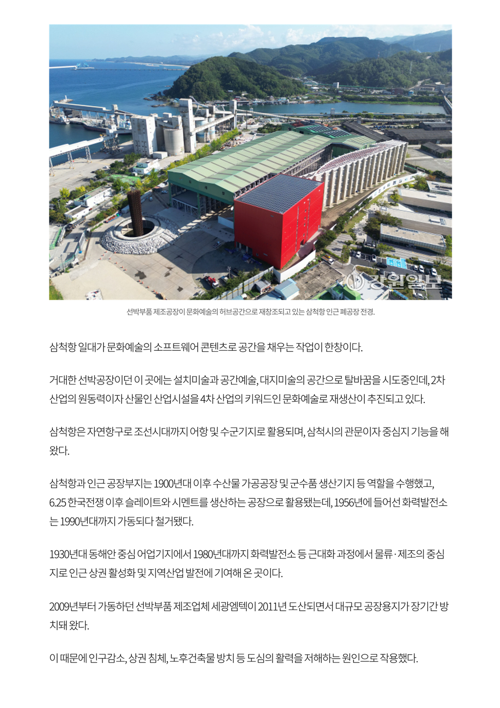 출처: 팔도핫 플레이스=삼척항 ‘폐산업시설이 문화예술 허브 공간으로 재창조’_강원일보_황만진기자