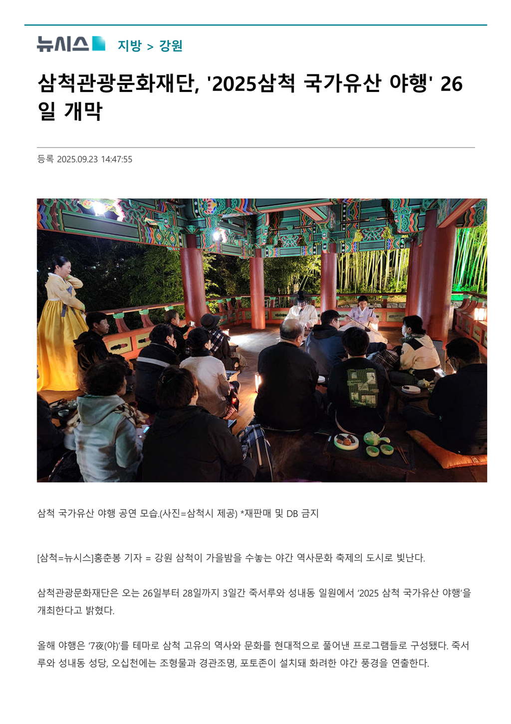 출처: 삼척관광문화재단, '2025삼척 국가유산 야행' 26일 개막_뉴시스_홍춘봉기자