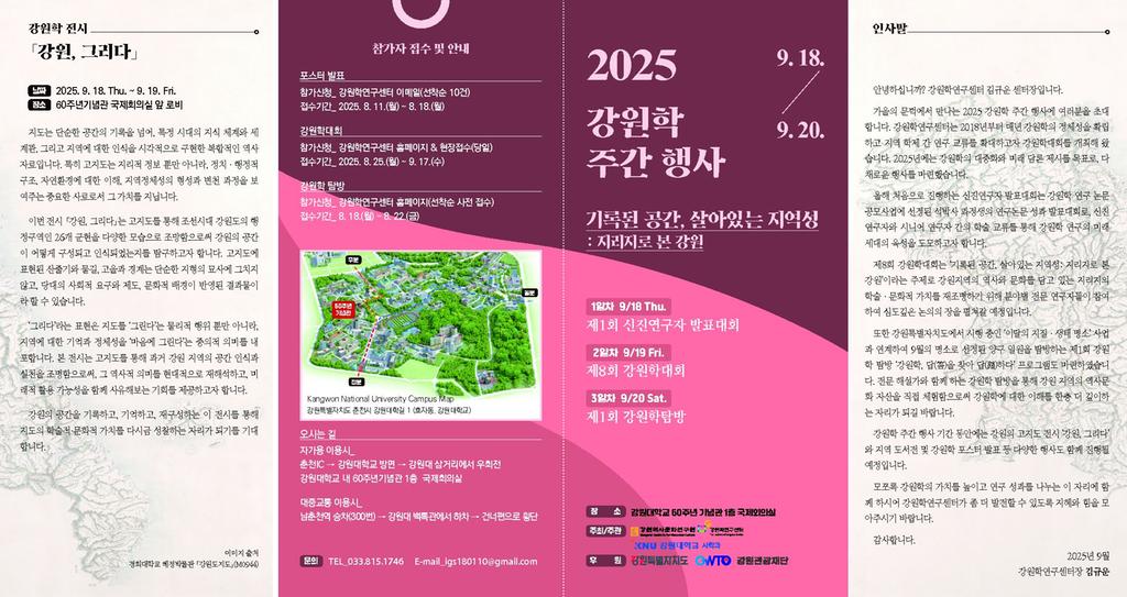 지역의 발전 방안을 마련하기 위하여 "2025 강원학 주간 행사"를 개최합니다